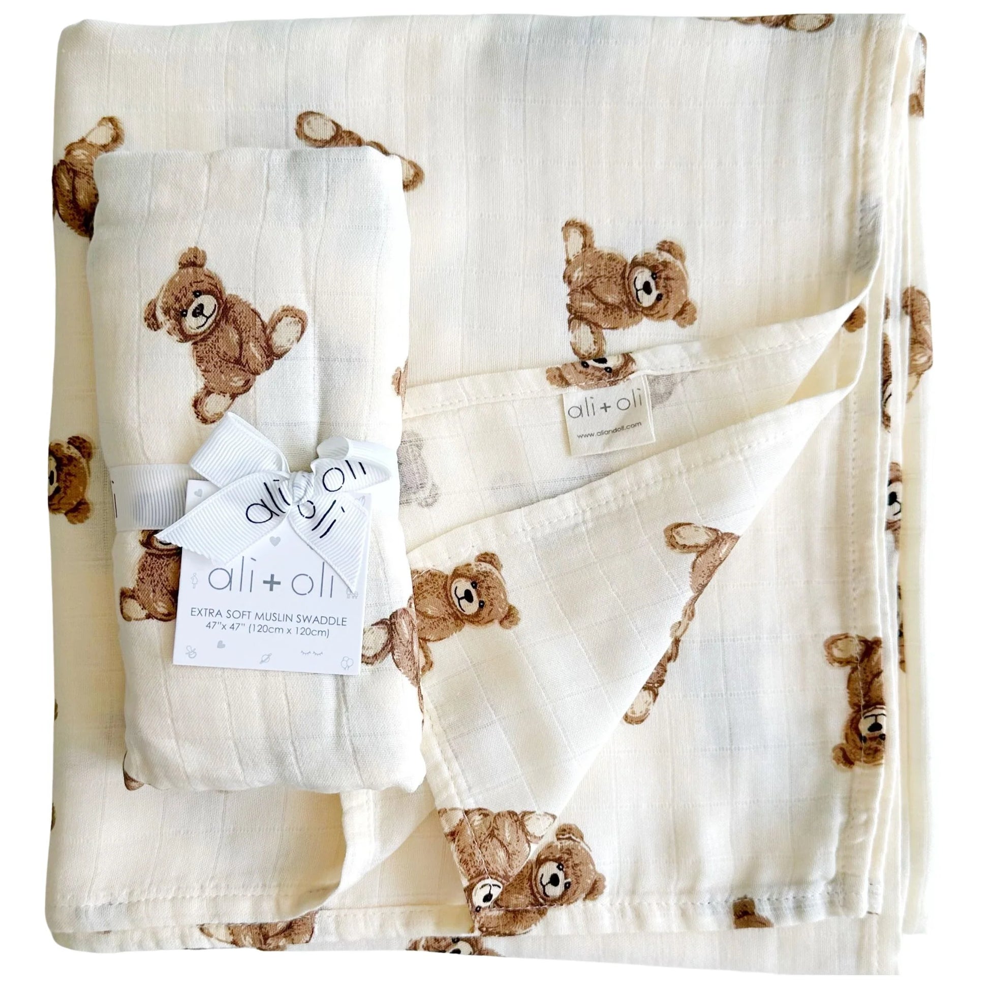 Ali+Oli Muslin Swaddle Blanket - Teddy Bear