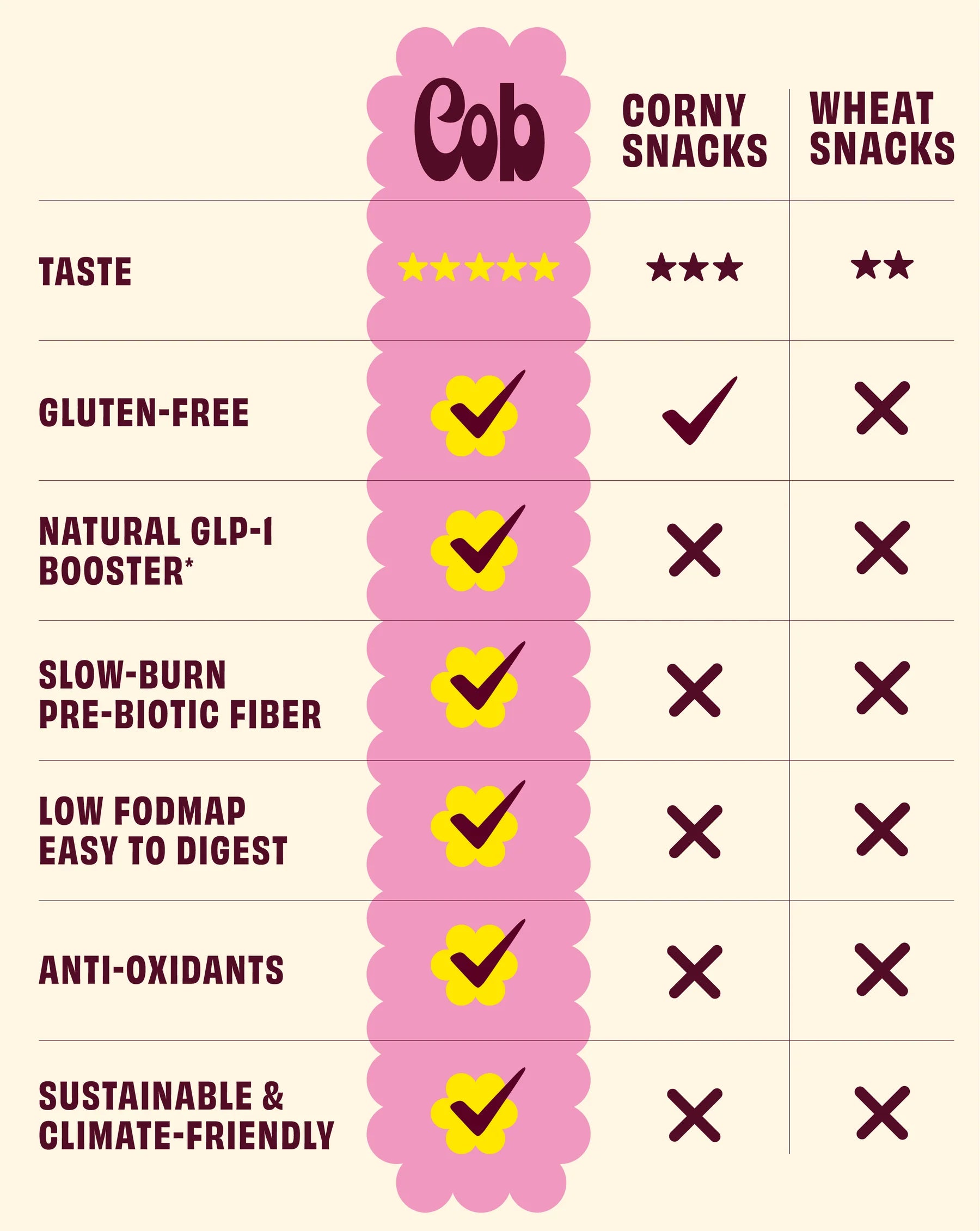 Our corn-free popcorn is made from popped sorghum, the gluten-free ancient grain that naturally boosts your GLP-1s to keep you fuller, longer.
