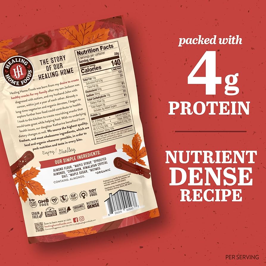 Ingredients: Almond flour, organic maple syrup, organic sprouted almonds, organic cinnamon, Himalayan crystal salt, organic maple sugar, organic nutmeg