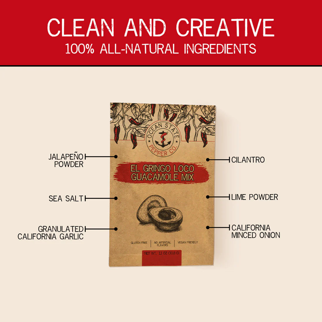 We have put together a great blend of Mexican herbs and spices combined with lime juice, and just enough jalapeño pepper for a great dip, quick and easy for whenever the mood strikes. All that we ask is that you provide the fresh avocados. Turns out those are harder to put into the pouches than we originally expected.