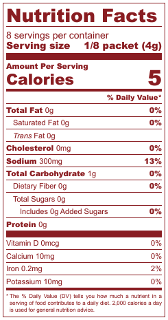 Ingredients: cilantro, minced onion, lime powder, jalapeño pepper, sea salt, agave, granulated garlic.