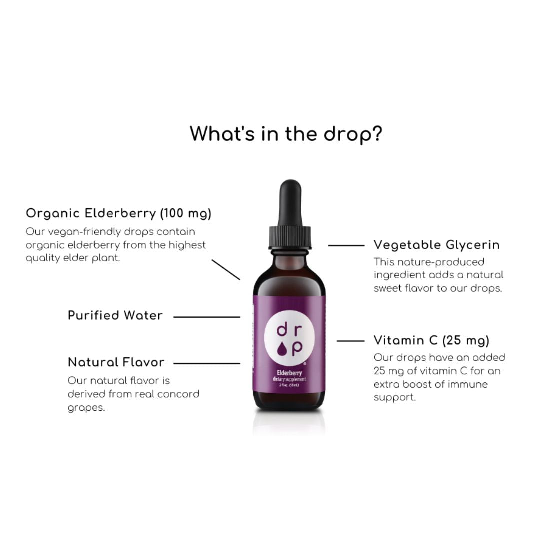 Elderberry Drops with Vitamin C - Organic Elderberry, Immune Support for Adults and Kids