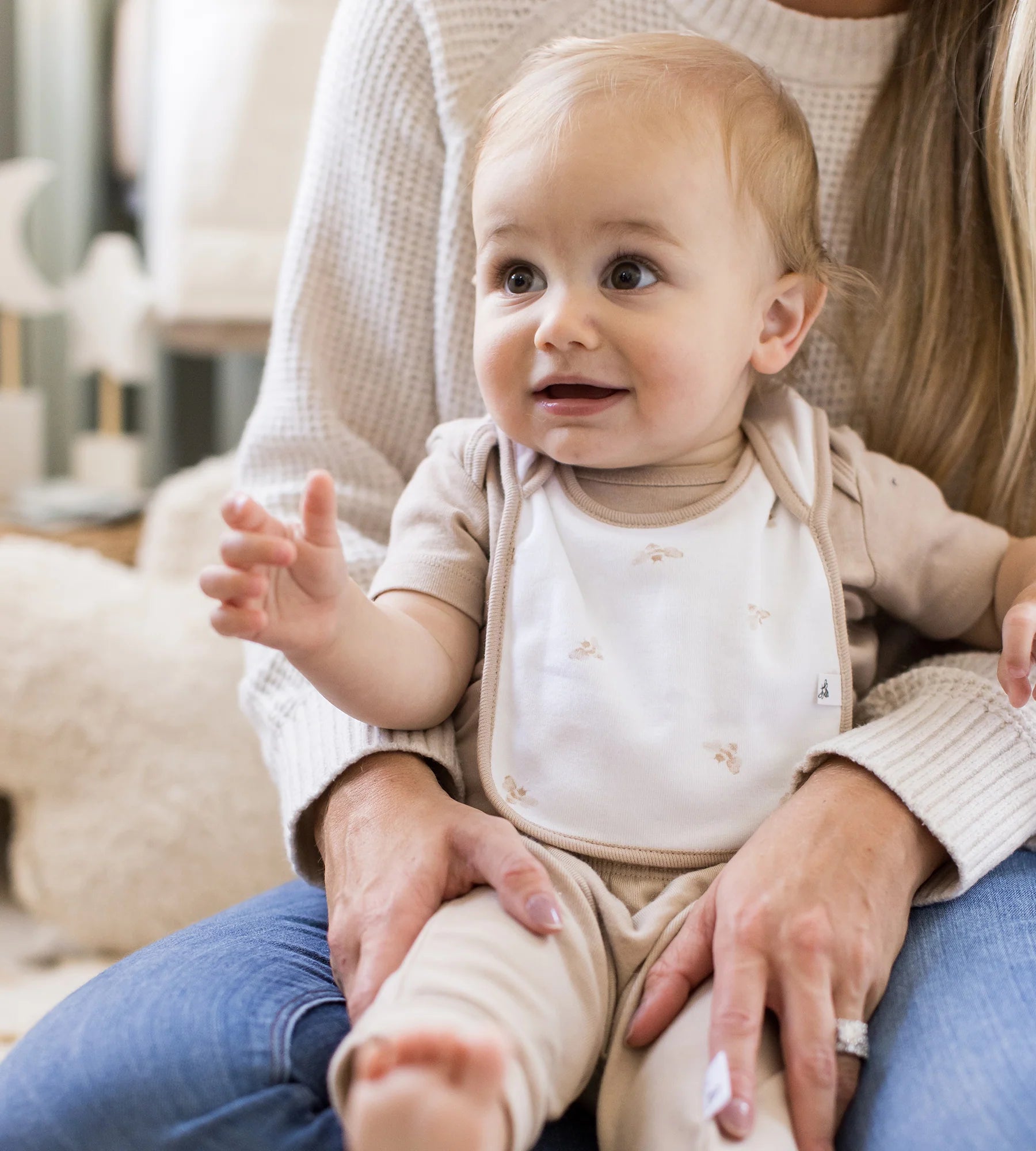 Modern solid colors and elevated watercolor prints bring our unique patented bib design to life! It is the only bib like it on the market! No more fussing with snaps and velcro. This pull over easy on/off design makes it easy to multi-task.