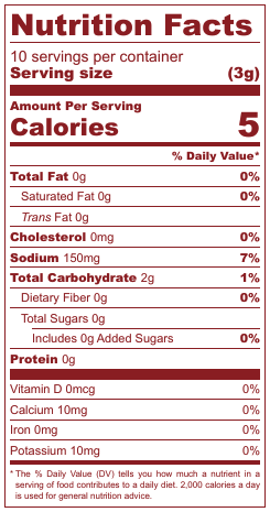 Ingredients: Roasted onion, minced onion, shallots, onion powder, granulated garlic, sea salt, parsley, lemon juice powder, pequin chilies, horseradish.
