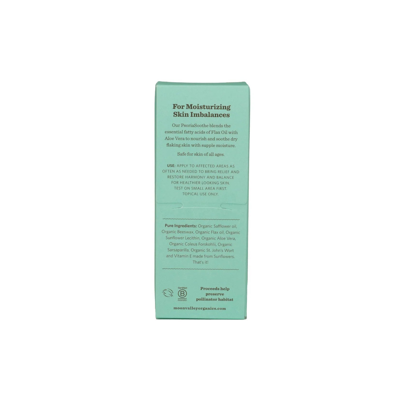 For Moisturizing Skin Imbalances. Our PsoriaSoothe blends the essential fatty acids of Flax Oil with Aloe Vera to nourish and soothe dry flaking skin with supple moisture. Apply lovingly to affected areas as often as needed to bring relief and restore harmony and balance for healthier-looking skin. Safe for skin of all ages.